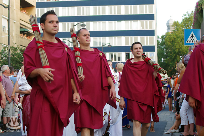 - Savaria szenátorai, a colonia elöljárói kíséretükben liktorokkal és díszvendégeik