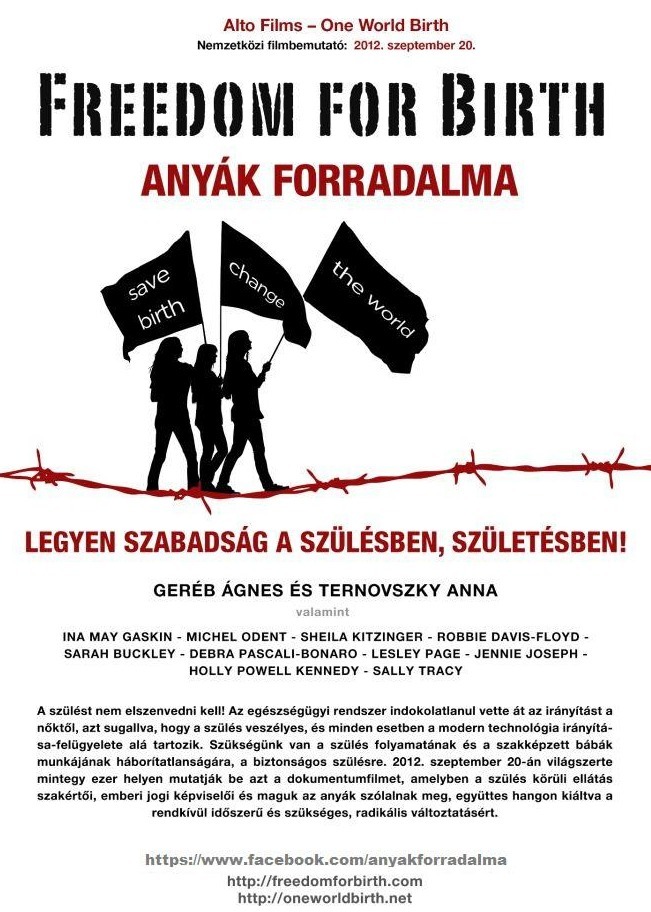 A Freedom for Birth című 60 perces dokumentumfilmben a szülés körüli ellátás szakértői, emberi jogi képviselői és maguk az anyák szólalnak meg, együttes hangon kiáltva a rendkívül időszerű és szükséges, radikális változtatásért.