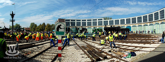 Pályakarbantartás hagyományos technikákkal - ez a lényege annak a különleges vetélkedőnek, amelyet évente rendeznek meg Budapesten, a Vasúttörténeti Parkban. Az idei versenyen sem volt könnyű dolguk a csapatoknak: ez alkalommal egy 12 méter hosszú sínpár és négy talpfa cseréjét kellett megoldani hagyományos kéziszerszámokkal. A csapatok munkáját azonnal élesben ellenőrizték: a kicserélt szakaszra egy gőzmozdony gurult rá. A zsűri pedig ún. vaksüppedésmérővel figyelte, hogy a hatalmas súly alatt hány millimétert süllyed a sín. A csapatoknak az időt is figyelniük kellett, hiszen az összevetésnél a kivitelezés pontossága mellett az is számított, hogy ki milyen gyorsan tudta elvégezni a síncserét. A GYSEV Zrt. csapata gyorsan és pontosan dolgozott: a hét induló egységből az első helyen végzett!