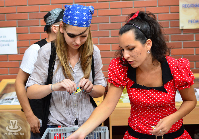 Gyerekzsivajtól volt hangos a főépület, ahol a hallgatók, a könyvtári dolgozók és a tanárok is bekapcsolódtak a különleges napba. A NyME-SEK könyvtára nyitott ajtókkal várta az érdeklődőket, itt a háromszintes intézmény minden emeletén kis csoportokba verődve vehettek részt a programokon, ahol zsetonokat kaptak a sikeres feladatok elvégzése után. Ügyességi próbák és fejtörők, gyermekdal felismerés és festés is a terítékre került a könyvespolcok között. Az aulában már a Mesebolt Bábszínházzal együtt lehetett beletanulni az arcfestés rejtelmeibe.
