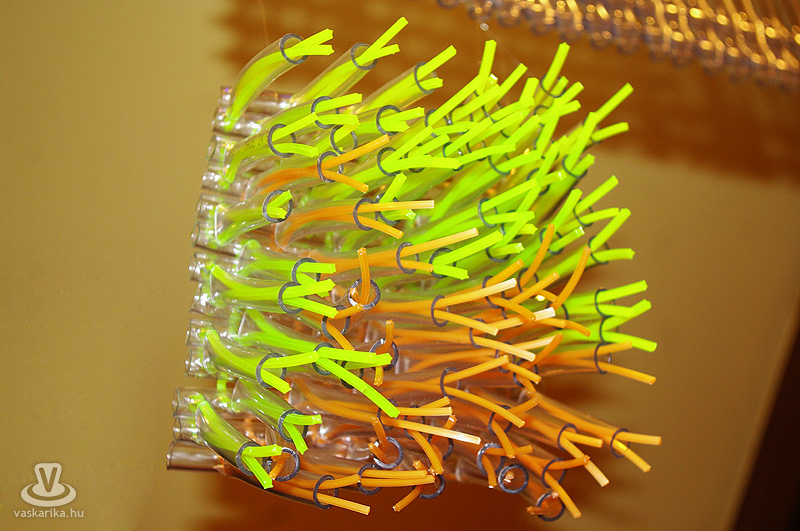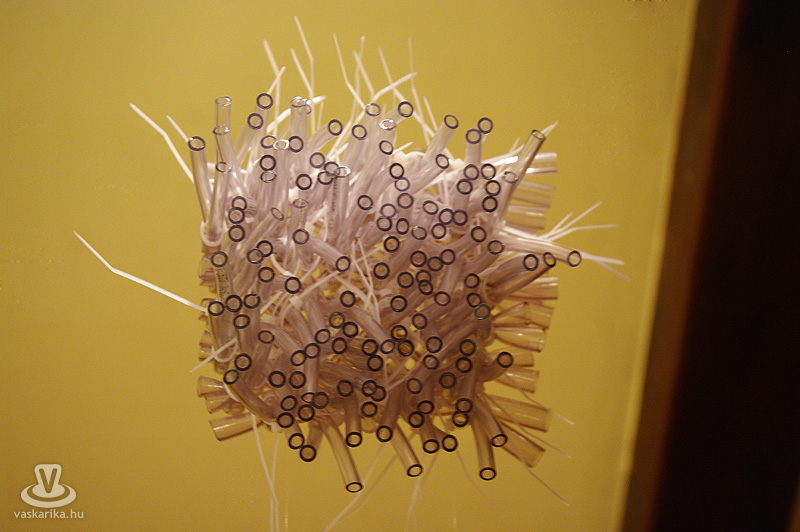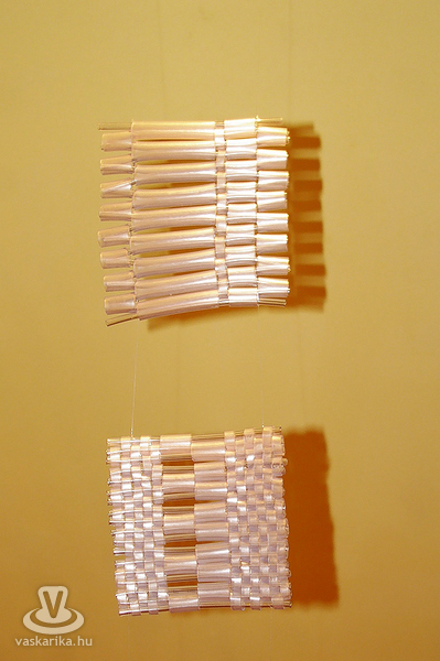 Ahogy a levegőben aprón libegnek, mintha életre is kelnének, és azonnal több nézőpontból lesz érdekes ez a minitárlat. Nagyon izgalmas volt a csövekből összerakott lebegő tárgyak közt járni, hiszen egy pillanat alatt előjött belőlünk a kisgyerek. Belenéztünk, picit hozzáértünk. Találgattuk, hogy mi, mihez hasonlít leginkább, és talán ez az igazán jó, ha nem egy „készre gyártott" információt kapunk, hanem a fantáziánk indul be attól, amit látunk. Tudván, hogy a művésznő a Moholy-Nagy Művészeti Egyetem textil szakán végzett, azonnal látni véltük, hogy ez a kiállítás tulajdonképpen olyan kicsit, mintha a különböző textíliákat, azoknak a szálait „nagyítaná fel".