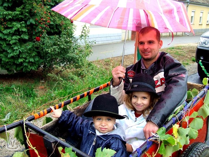 Október második szombatján nyakunkba kaptuk a lábunkat, kameránkat vállunkra dobtuk és elindultunk a szomszédos megye első falujába, Szakonyba, ahol a hagyományos szüreti felvonulás tartották. Erre a napra majd minden ház és kiskert ünnepi díszbe öltözött.