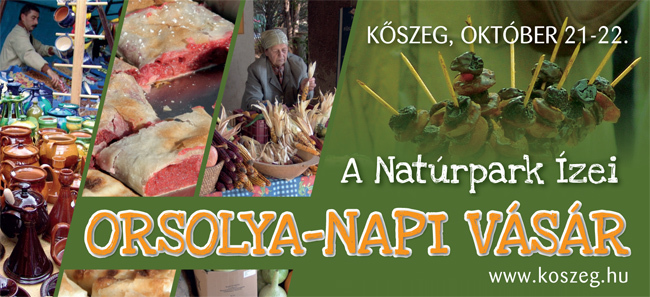 Az idén 11. alkalommal rendezi meg Kőszegen a „Natúrpark ízei"-Gasztronómiai fesztivált és Orsolya napi vásárt a Jurisics-vár Művelődési Központ és Várszínház az Írottkő Natúrparkért Egyesület segítségével. A rendezvényen kirakodóvásárt tartanak a natúrpark 16 településének kézművesei: borászok, méhészek, virágkötők, fafaragók, gyöngyfűzők, fazekasok, csuhé-báb- és terményjáték készítők, tojásfestők, szalmafonók, az érdeklődők pedig kóstolhatnak, vásárolhatnak.