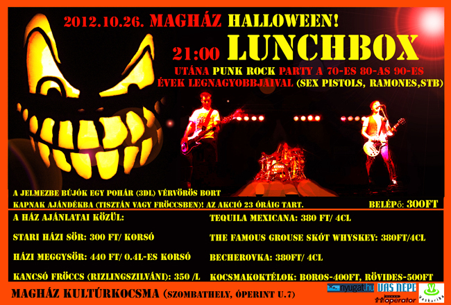 Október végén a Magház Kultúrkocsma ismét belehúzott, és különleges zenei programokat ígér. Fellép a Lunchbox zenekar, részesei lehetünk egy beszélgetésnek Gerendás Péterrel, aki Moran Magallal ad közös koncertet. A hónap utolsó napján pedig a zenés beszélgetés sorozatban Büki László ezúttal Czutor Zoltánt kérdezi többek között zenéről, Nyersről, Belmondóról.