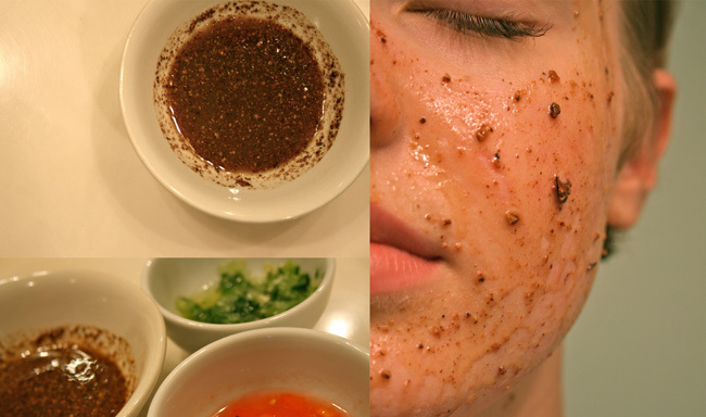 Egy teáskanál (barna) cukrot összekeverünk egy teáskanál olívaolajjal, majd óvatosan átdörzsöljük vele arcunkat a szemkörnyék kihagyásával. Bőrünk megtisztul, fellélegzik, az elhalt hámsejtek eltűnnek. Az olívaolaj is rengeteg pozitív élettani hatással rendelkező összetevőből áll. Könnyen és gyorsan felszívódik, eljut a bőr mélyebb rétegeibe is, sok A-, D-, E-vitamint és a béta-karotint tartalmaz. A linolsav táplálja a bőrt, erősíti az immunrendszert, emellett pedig nagyszerűen tisztít és hidratál. Az olívaolaja Homérosz "folyékony aranynak" nevezte.