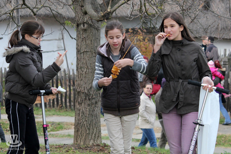 Napfényes, meleg idő aranyozta be a Szent Márton-napi vásár utolsó napját. Az ebédidő elteltével megtöltötték a családok a Múzeumfalu dimbes-dombos lankáit, ahol nagyszerű családi programok várták őket. A kicsik kerámiát festettek, gólyalábon egyensúlyoztak, és "kifosztották" az árusokat. Így futkorásztak fel-alá a kis kincsekkel, míg a nagyok, és a szülők megpihenhettek egy-egy pohár forralt bor társaságában a gyönyörű, hagyományhű környezetben.