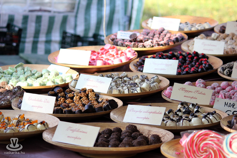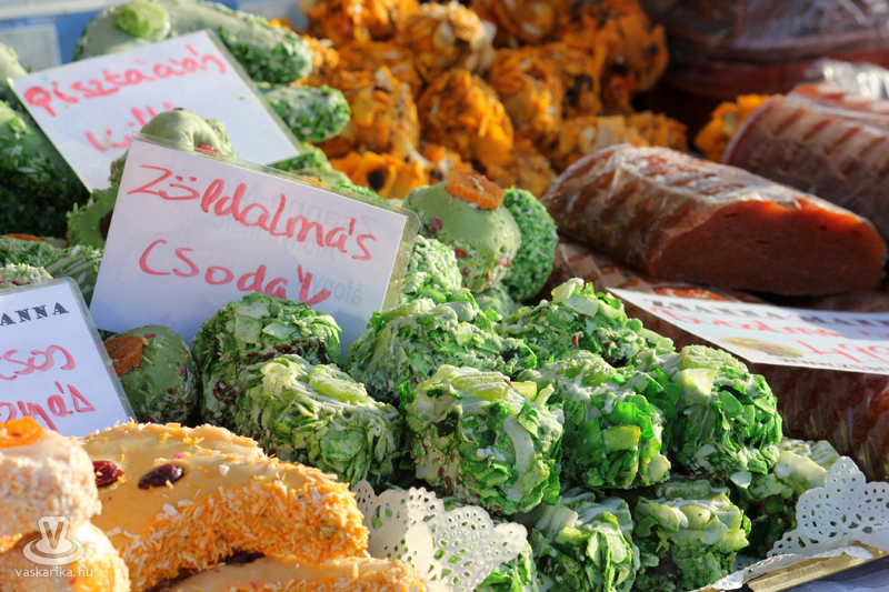Ahogy az egy igazi vásáron elmaradhatatlan, roskadoztak a pultok a langallótól, friss sült kolbásztól, illatos pecsenyéktől, hagymától és krumplitól. Magyarosan. Nem lehetne olyan portékát említeni, amelyet ne találtunk volna meg: érkeztek erdélyi csipkeverő asszonyok, csabai húsfeldolgozók, mongol hagyományőrző bőrdíszművesek, sőt mi több! Egyszer-egyszer felharsant a „Teleshopos felmosórongyot vegyenek!” is. Állítólag perui árusok is voltak. Ezt tudtuk, hogy egy borvirágos arcú öregúr fennkölt hangon, magából kikelve és hitét teljes mértékben elveszítve hangoztatta, hogy bizony csak a hülyeségre van pénz a kultúrára nem, és hogy nézzük csak meg a peruiak pultját, mert hát az még mindig tele van.