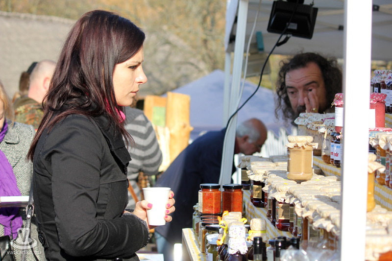 A jó borban és pálinkában sem volt hiány! Sorakoztak országunk méltán ismert borvidékeinek promókatonái, akik az aranyat érő nedűt gyakran az aranyat meghazudtoló áron kínálták. A délután folyamán érkeztek az idősebbek is, akik az előbb említett pultoknál múlatták az időt. Az arcukon derű és elégedettség, mely talán az autentikus hangulatnak volt köszönhető. A kerámia és cserépárut igazi tanyasi háziasszonyok árulták. Volt még házi méz, szappan, és mézes szappan, lúdtoll párna, kézzel szőtt téli mamusz. S hogy az urak se maradjanak üres kézzel, hatalmas sajtok, kolbászok, sonkák sorakoztak a standokon, tökéletes íz- és illatharmóniát alkotva. Ez a felhő emelkedett fel a gyermekkacajtól, a hegedű és citera dallamától és a régi barátok találkozásának örömétől a Múzemumfalu domjai fölé, majd hullatta ránk később a nosztalgia harmatát.
