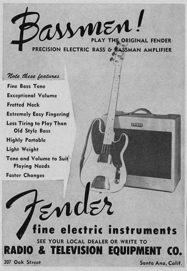 Az első gitárszériák lassú térhódítása ellenére a gyakorlatias, problémamegoldó Leo képtelen volt ellenállni a kísértésnek, hogy a folyton nyavalygó bőgősök, és az alkalmanként bőgőzni kényszerülő gitárosok számára is készítsen egy megbízható igavonó eszközt, mellyel -úgy gondolta- örökre feledésbe merítheti az általa kutyaháznak nevezett nagybőgőt. Lázas kísérletezések eredményeként 1951 októberére megszületett a Fender Precision Bass, avagy a pontos basszus, amely az első teljesen sorozatgyártási eljárásokkal előállíthatóvá tervezett elektromos basszusgitár. Igazából nem kellett már a gyártástechnológiában semmit kitalálnia a tervezőnek, hiszen a