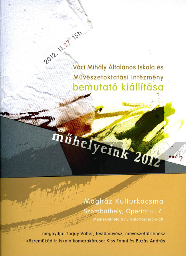 15:00 - A Váci Mihály Általános Iskola és Művészetoktatási Intézmény bemutató kiállítása: Műhelyeink 2012