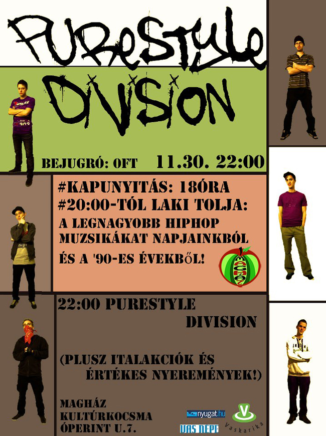 Hosszú idő után ismét Szombathelyen zenél a Purestyle Division! A régi, jól ismert muzsikák mellett helyet kapnak szóló és új dalok is!