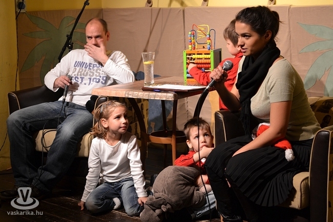 A Mikulás-ünnep jegyében telt a heti Színházszerda a Café Frei karácsonyi díszbe öltöztetett kávébirodalmában. A gyerekzsivaj és a piros Mikulás sapka sem maradt el - Vass Szilárd és Unger Tünde, a Weöres Sándor Színház színészeinek egyórás beszélgetésében a gyerekek játszották a főszerepet. Sziszi csemetéi már a kezdéskor a pódiumon termettek, s bár néha nehéz volt őket kordában tartani, a gesztust értékeltük.