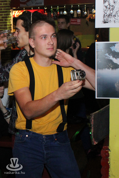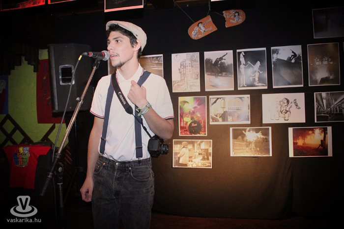 Fotók és grafikák borították a Magház Kultúrkocsma falát, a plafonról régi deszkáscipők lógtak, néha egy-egy törött gördeszkára installált rajzba is belebotolhattunk. Szemeink minduntalan pásztázták a teletöltött teret, míg Attila ott járkált köztünk. Csendben, büszkén, boldogan.