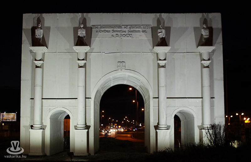 A Savaria Történelmi Karnevál Alapítvány és a Vasi Villszer Bt. jóvoltából mától 10 darab, egyenként 50W-os LED-izzó világítja meg a Zanati úti körforgalomban álló diadalívet. A világítás 6 forintjába kerül a városnak. Óránként.