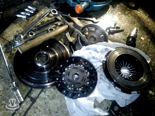 A motorkivétel különösebb gondok nélkül megtörtént, bár már az első fogásra nyakig olajos lettem, de erre készüljön, aki egy több mint 40 éves autót restaurál. A motor szétszedése a lehető legjobban haladt: a németek tudtak autót építeni... A legnagyobb gondossággal rakták össze, amit 10-es, 13-as villás és T-kulcsok, valamint néhány célszerszám segítségével röpke pár óra alatt darabokra tudunk kapni.