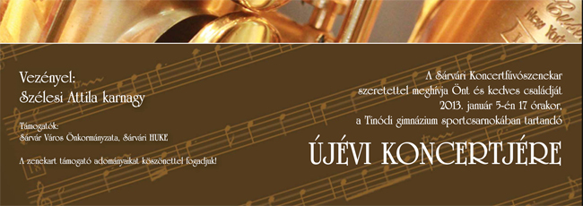 A Sárvári Koncertfúvószenekar 2012. január 5-én, szombaton 17 órai kezdettel rendezi meg 40. Újévi koncertjét a Tinódi Gimnáziumban.