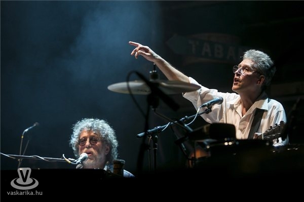 Karácsony János énekes-gitáros (b) és Presser Gábor énekes-billentyűs (j) a Locomotiv GT (LGT) együttes koncertjén a Papp László Budapest Sportarénában 2013. február 15-én.