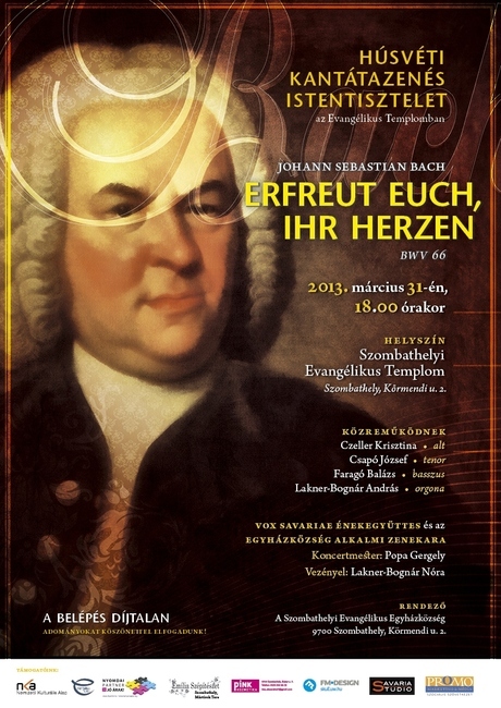 Az Szombathelyi Evangélikus Egyházközség 2013. március 31-én, Húsvétvasárnap 18:00 órakor J.S. Bach- korabeli Kantátazenés Istentisztelet rendez.