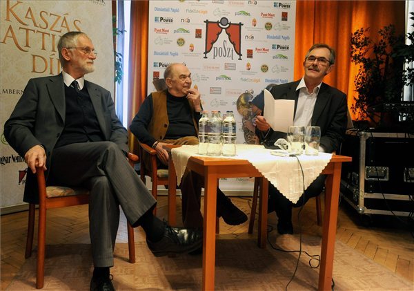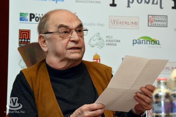Solténszky Tibor dramaturg (j) beszél azon a sajtótájékoztatón, amelyen kihirdették a XIII. Pécsi Országos Színházi Találkozó (POSZT) 2013. június 6. és 15. közötti programját a Rátkai Klubban 2013. március 8-án. Mellette Bodrogi Gyula, a nemzet színésze, a POSZT idei díszvendége (k) és Szigethy Gábor író, rendező, színháztörténész (b). Hat vidéki, négy fővárosi és két külhoni előadás szerepel a POSZT hivatalossá vált versenyprogramjában.