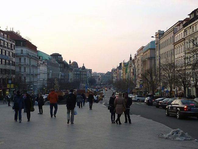 Pénteken késő délután - a kissé fárasztó félnapos utazást követően - a szállodától metróval mentünk a központba. A Muzeum állomásból felbukkanva a már jól ismert Vencel tér tárult elénk. A Nemzeti Múzeumtól lesétálva gyűjtöttük a nap első benyomásait. A tér másik végpontjába kb. 700 méteres séta után értünk el, közben nézhettük a kirakatokat és az éttermek kínálatát.