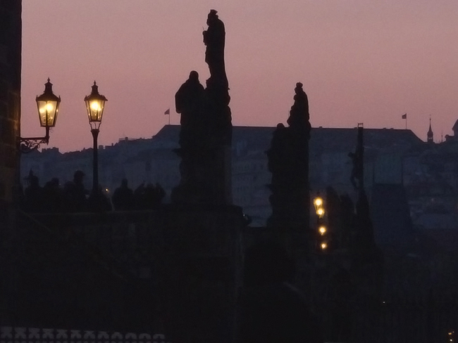Idősödő zenészek járták felváltva a termeket, minden nemzetnek a saját nótáit játszották, nekünk az „Az a sze, az a sze, akinek a szeme ke..." jutott. Miután a mellettünk ülő német házaspár távozott, egy erősen kapatos svéd fiúcsapat lett az asztaltársaságunk, így hamarosan a „Dancing Queen" is felcsendült. „Ej, de jó kis este ez!" - gondoltam magamban. Lassan fizettünk és elindultunk a szálloda felé: Egy „Prága by night" még belefért, mielőtt elment volna az utolsó metró.