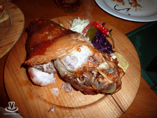 Mivel nemcsak szomjasak, hanem éhesek is voltunk, így még a híd előtt dobtunk egy jobbost, és egy szintén már bevált helyre, az U Rudolfinaba (A Rudolfínumhoz) igyekeztünk. Ez a kocsma is tele volt, a főpincért kedvesen megszólítva azonban megkaptuk a két foglalt feliratú asztal egyikét. Az étteremben kizárólag cseh nyelvű étlap létezik, de mi felkészültek voltunk: kis turistaszótárral érkeztünk! A szomszédos asztalon egy ínycsiklandozó csülökre lettünk figyelmesek. Gyors döntésre jutottunk: Koleno! A tormával, mustárral, uborkával, paprikával és vöröskáposztával körített csülök kétemberes (erre fel is hívta a pincér a figyelmünket) és csakúgy omlik a szájban. Mennyei volt, ahogy a csapolt Pilsner Urquell is! A vacsora után jól esett a séta a Károly hídon.