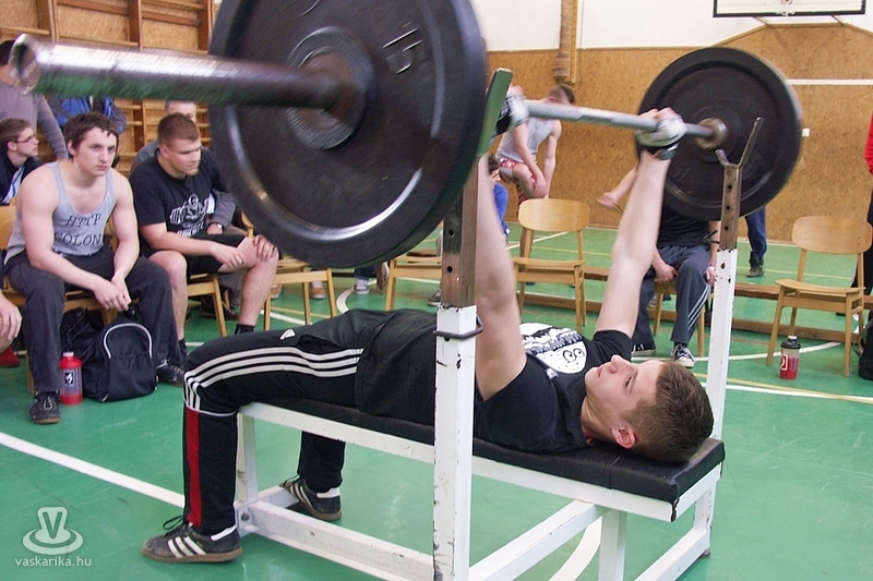 Vas megye középiskolás korú fiú kollégistáinak egyéni versenyére került sor a Savariai Szakképző Iskola kondi- és tornatermében, ahol fekvenyomásban döntötték el, ki Szombathely legerősebb kollégistája. Ennek megállapítása úgy történt, hogy a fekvenyomásban elért eredményből /kg/ kivonták a versenyző testtömegét, és az így „megmaradó" legnagyobb tömeg tulajdonosa lett a legerősebb. Csak szabályosan végrehajtott gyakorlatokat fogadott el a versenybizottság. Minden súlyon két-két kísérletet tehettek a versenyzők - 50 kg volt a kezdősúly, 5 illetve 2,5 kg emelésközökkel lehetett feljebb lépni.