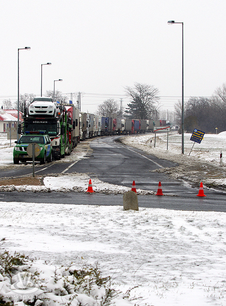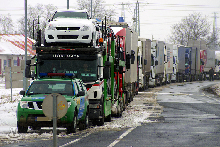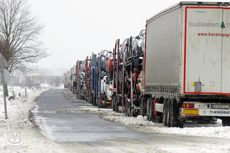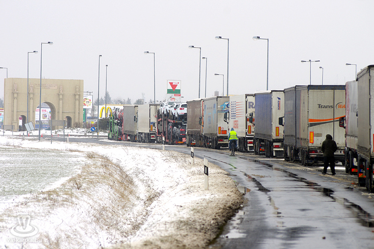 A Zanat felé vezető úton végig várakoznak a kamionok