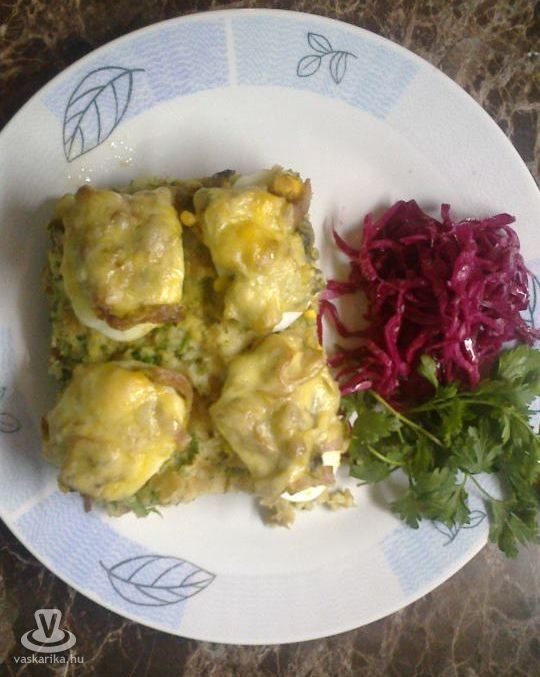 A töltött tojások tetejére tegyünk reszelt sajtot, majd 20-25 perc alatt süssük meg.