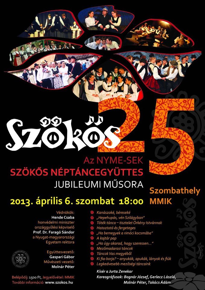 Idén ünnepli megalakulásának huszonötödik jubileumát a szombathelyi Nyugat-magyarországi Egyetem Savaria Egyetemi Központ Szökős Néptáncegyüttese. Ez alkalomból április 6-án a táncosok fiatal és „öreg" nemzedéke kétrészes műsort ad a szombathelyi MMIK-ban, megelevenítve az utóbbi évek és a korábbi évtizedek legsikeresebb produkcióit.