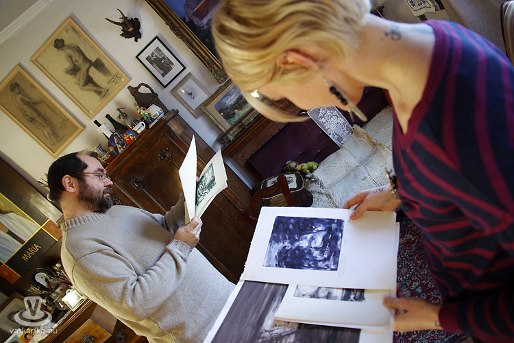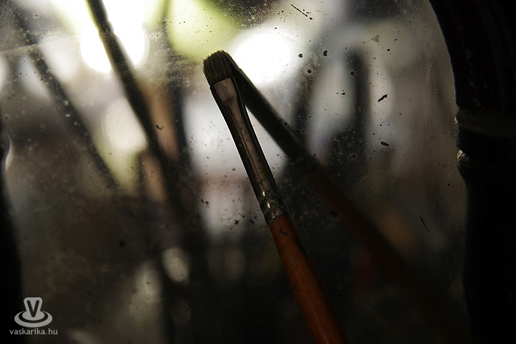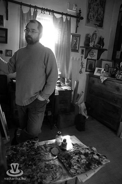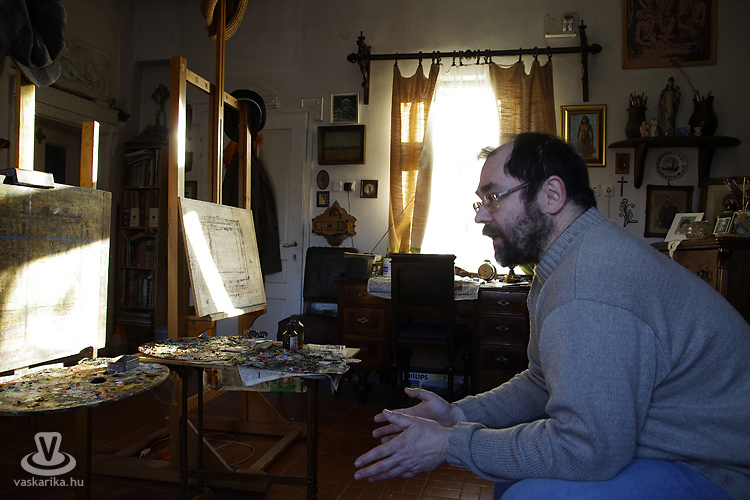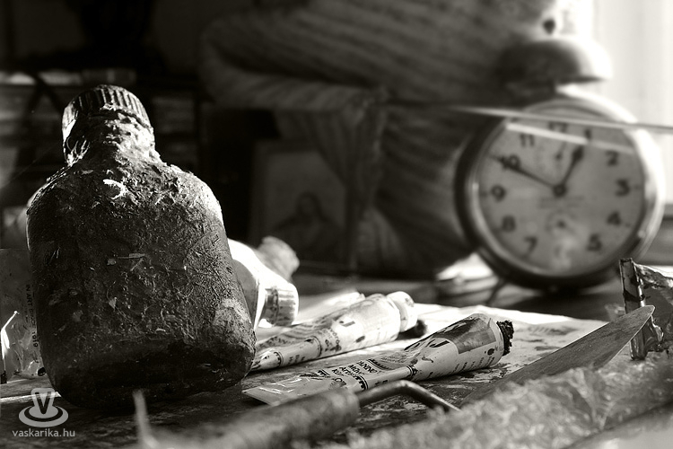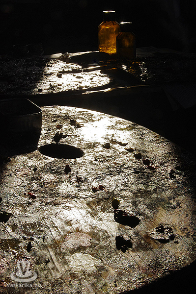 A hűvös, roppant szeles ám napfényes péntek délután egy márciusi napon szívmelengető időutazással ajándékozott meg. Egy művész műtermébe lépni kicsit olyan, mintha az alkotó saját lelkébe engedne bepillantást. Ritka és értékes élmény. Feltárt csoda és elhallgatott valóság. Hisz mindaz, amit egy ilyen helyen találunk, az annak a varázslatnak a része, amiből mi a legtöbbször csak a végeredményt látjuk. A része ennek, de közben semmi egyebet nem árul el magáról az alkotásról, mint hogy itt készült. Egy műterem mégis épp emiatt marad vonzó. Csupán sejtet, a megoldással kecsegtet, de közben sosem ad végleges megoldást. Sem az alkotó, sem a kívülálló számára...