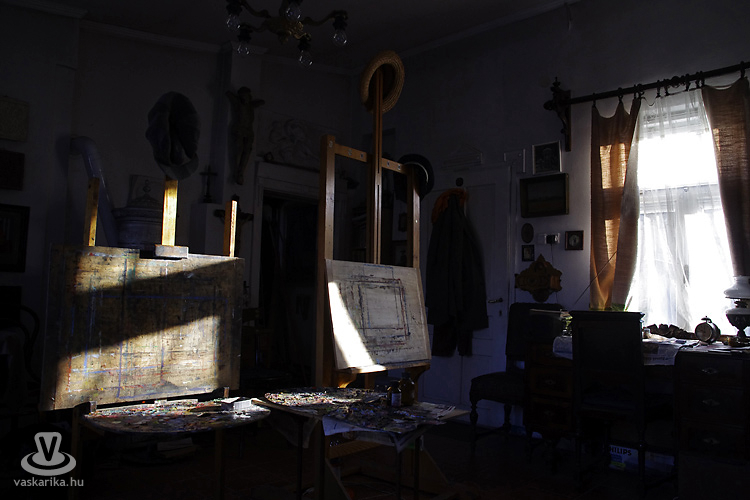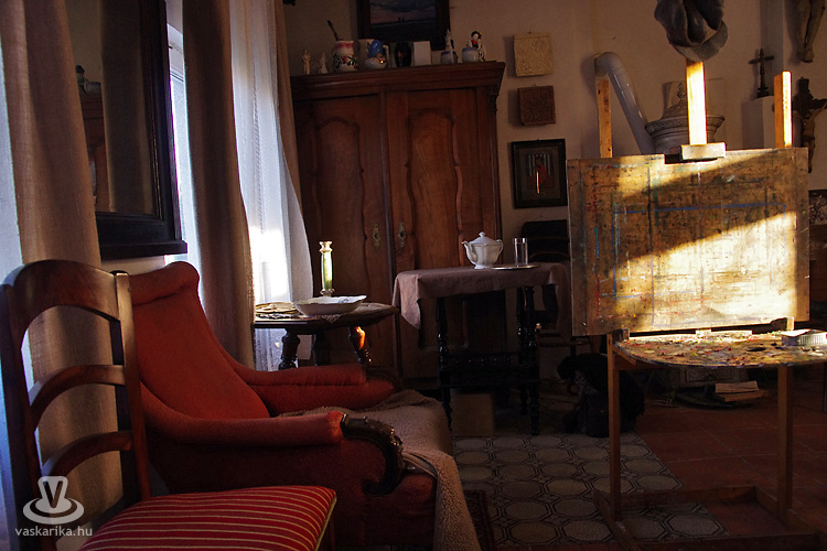 Az ajtón belépve rögtön hevesebben dobog a szívem, miután meglátom azt a halom ősrégi bútort, amik csendes egyszerűséggel ékei még ma is (az idő nyomait büszkén viselve) letűnt koroknak, melyeket mi már csak könyvekből, az internetről, netán festményekről ismerünk. A szobában terjengő illat ismerős, nagymamám kályhája ontotta magából mindig ezt az összetéveszthetetlen „meleg-illatot", amiért bármilyen hideget képes elviselni odakint az ember, ha ezt érezheti bent a házban. Apró kis szoba festőállványokkal, íróasztallal, szekrényekkel, ecsetekkel, festményekkel a falon, régi fotókkal és a legkülönbözőbb székekkel.