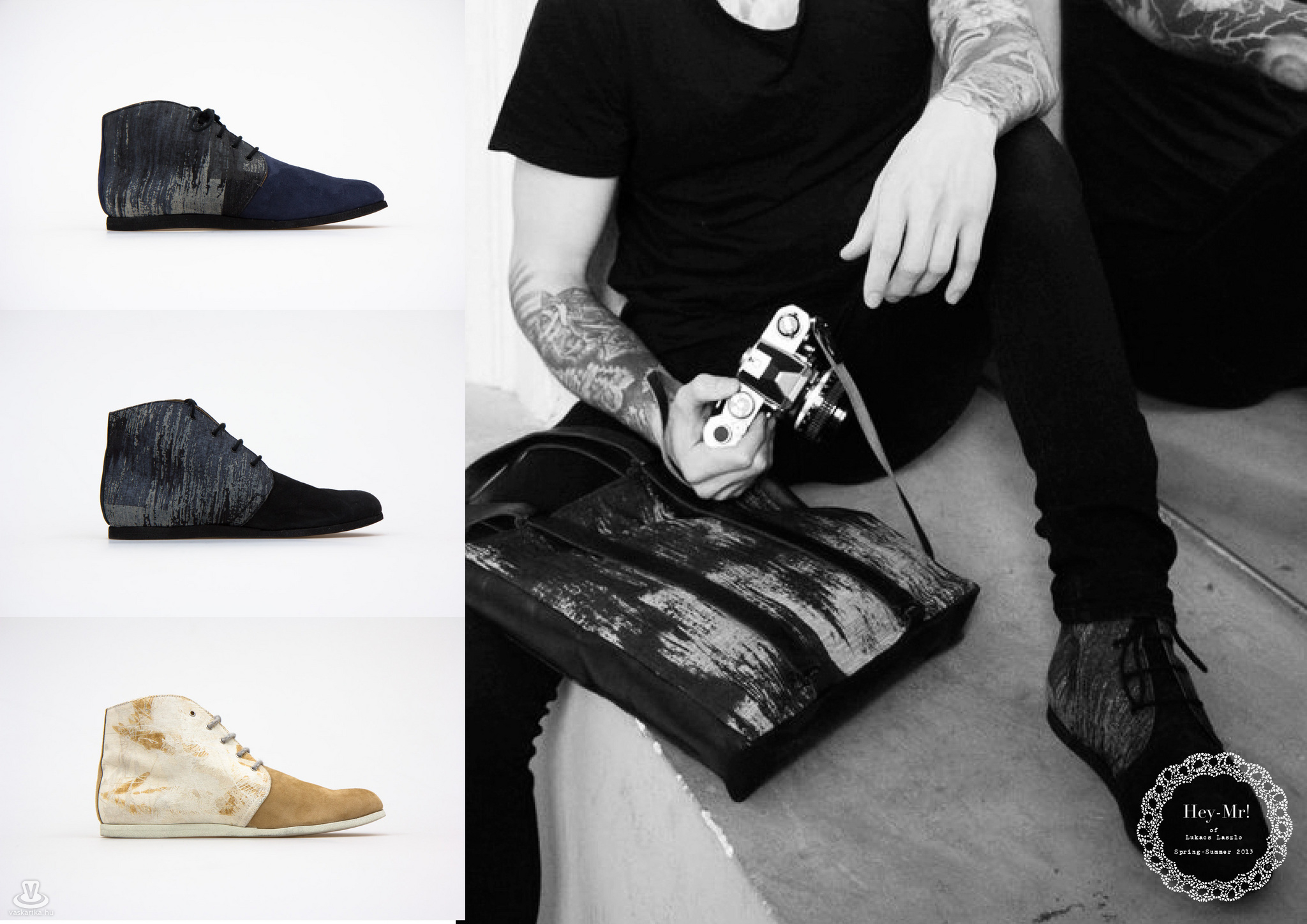 A Hey-Mr! nemcsak egy új divatmárka. A Hey-Mr! egy termék, egy szimbólum, amely egyesíti magában az egyéniséget, az önbizalmat és a művészetet. A Hey-Mr! egyedi jellegét a bőr speciális feldolgozása adja, a varratok megbízható pontosságával, megalkuvást nem ismerő, feltűnő megjelenésével biztosít komfortot. A bőr többször festett és nyomtatott, az ezt követő finomhangolással érjük el az egyedülálló vizuális hatást és egyedi mintát, amelytől mindenegyes darab különlegessé válik. A Hey-Mr! cipők kiváló minőségű bőrből készülnek, kényelmesek, tökéletesen kombinált, könnyű anyagaikkal megmutatják a játékos és kecses lelket.