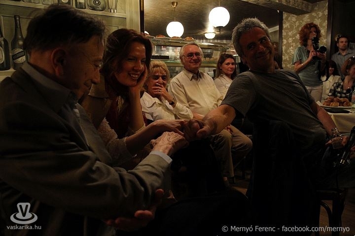 Juhász Anna, a rendezvény háziasszonya bevezetőjében elárulta, az est címe, A csillagok világa egyszerre több dologra utal: elsőként természetesen egy Vámos Miklós kötet címe, melyben dr. Virág Pál tengerjogász mesél, állandóan mesél - világnézetét, tudását mesékbe csomagolva adja át (nemcsak) ikerfiainak, s természetesen így az ő életét is megismerhetjük. Ehhez a mesélő kedvhez és tudás-világ-látás és befogadás-átadáshoz kapcsolódnak az est vendégei, ők ugyanis hosszú évtizedek óta nagyon sokat adnak mindannyiunknak. Bemutatják az élet és az emberek sokszínűségét, legyen szó televízió, illetve rádióbeli saját műsoraikról, felejthetetlen interjúikról, beszélgetéseikről, köteteikről - mesélnek, világokat nyitnak ki, s köteteik kapcsán pedig saját életükbe, saját legbensőbb világukba is bepillantást engednek. Ismerősként köszönthettük hát őket a Hadik Kávéházban, de közéleti szereplésük mellett barátságuk, s mindenekelőtt az írói tevékenység is összekötő szál közöttük. Az este három meghívott vendégével az irodalom, az írás, a média, a zene és a nagy találkozások egyaránt központi témává váltak.