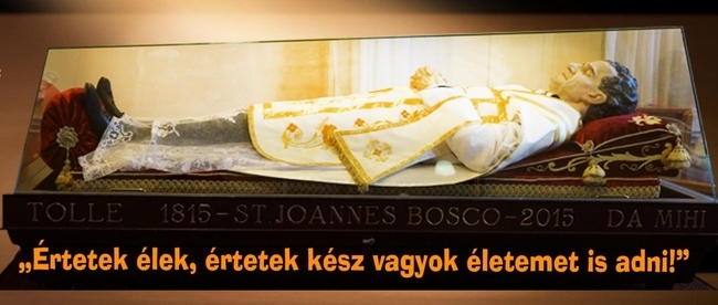 Aztán: ez az ember még halott mozdulatlanságában is mosolyog. Csakis így képzelem el én őt: csodálatos, tartalmas és teljes életet élt, és a haláltól sem félt, mert mindvégig önzetlen és lelkiismeretében tiszta, egyenes életvitelt gyakorolt. Ezért azt mondom, hogy aki békétlenséget, boldogtalanságot, reménytelenséget hordoz szívében, jöjjön el hozzá, mert jó helyen van nála: egész életét azzal töltötte, hogy „rossz" fiatalok számára jelen legyen. Mert aki rossz, az belül békétlen, boldogtalan, zavaros - ennek a gonosz erők örülnek a legjobban, mert ez a fiatal nagyon könnyű préda, áldozat. Neki segíteni kell, hogy értelmesebb legyen és kisimuljon az élete. Don Bosco fő célja ez. Állandóan kész volt két jól eltalált, személyes, buzdító mondatot súgni bármelyik barátjának a fülébe, amit megfogadva aztán jó irányba vitte azok életét.