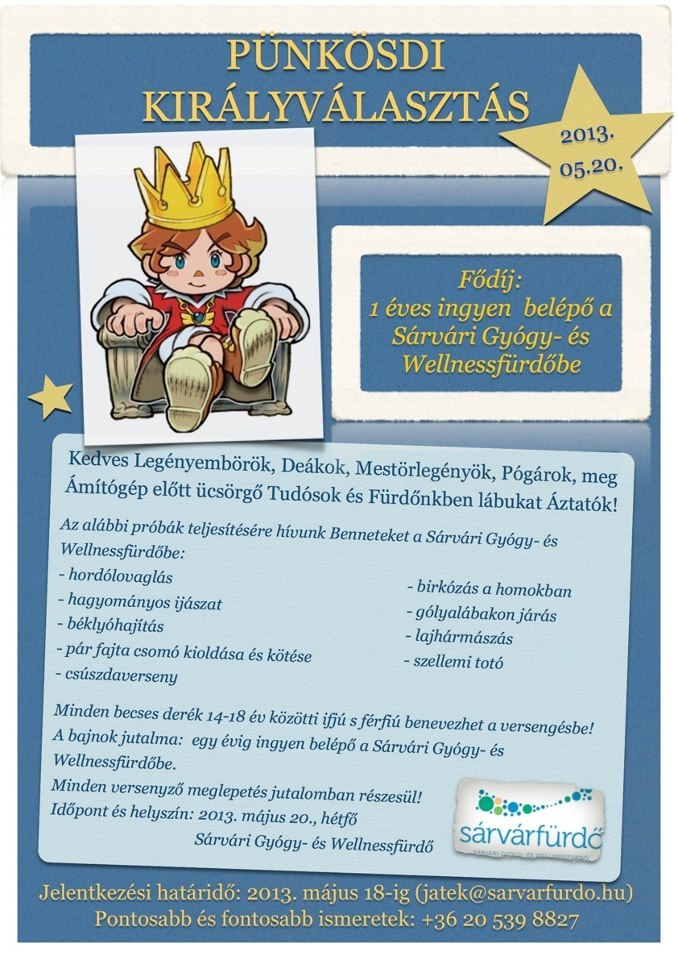 Jelentkezési határidő: 2013. május 18-ig elektronikus levélben: jatek@sarvarfurdo.hu