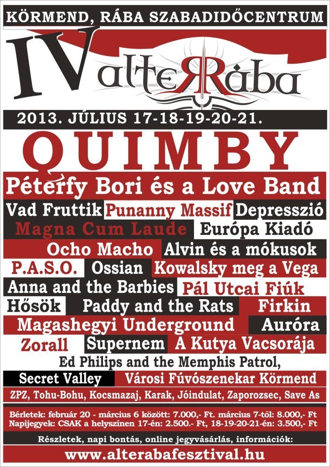 AlteRába IV - A Quimbyvel és több jubiláló zenekarral készül Körmend a nyárra