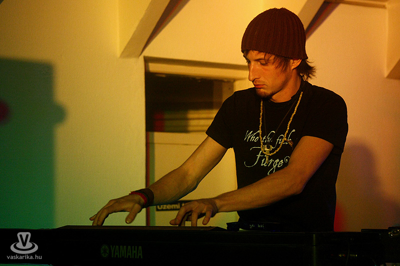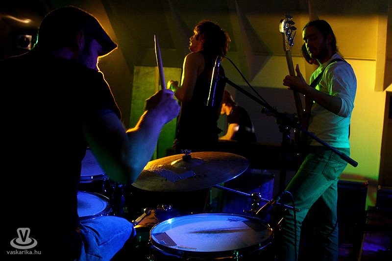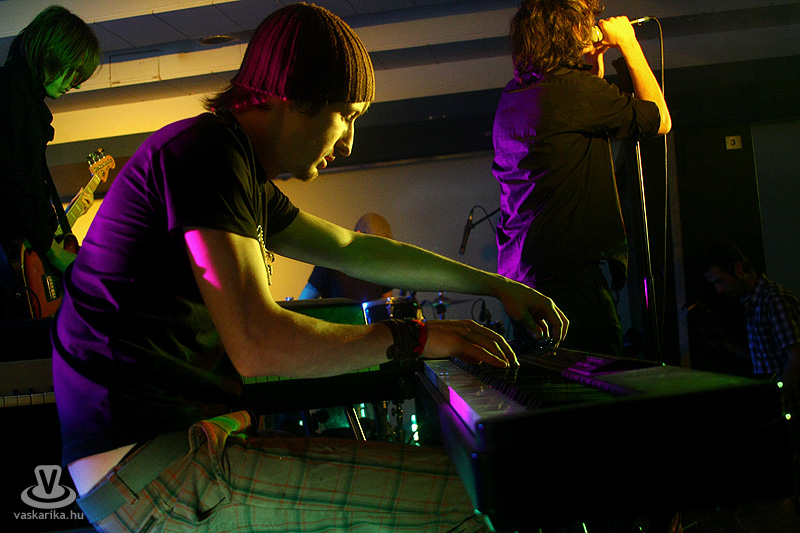 Néhány perces átállást és beállást követően érkezett a Jazzékiel, az este egyetlen lehetséges húzóneve. Frontemberünk fel is szólította a közönséget (némi vulgáris nyomatékosítással), hogy tolják ki az arcukat a kávézóból, mert ez így nem egészen fedi a koncert fogalmát. Felszólításának nem sokan tettek eleget, de elmondható, hogy legalább két leányzót sikerült meggyőzni, akik a koncert végéig a színpad előtt táncolgattak, bár a lelkesedésnek lényegesen magasabb fokait is láttuk már. A zenekar egyébként elképesztően jól működhet a színpadon, főleg, ha a közönségből is jönnek energiák, amiket aztán vissza lehet forgatni. Jó dalaik vannak, amiket nagyon jól és szépen játszanak el. A Matek című dalt ezen az estén játszotta először a dobos: egy ideig minden zenésztárs őt figyelte, és nem hibázott a fiú, vagy ha igen, annyira lelkes volt, hogy senkinek fel sem tűnt. A Matek után jött egy sanzon, különösen kedves füleimnek, meg a slágerek, így az Utolsó lemezlovag is. Jól működő zenekart láttunk és hallottunk: talán legközelebb egy igazi koncerthez is lesz szerencsénk, ugyanis a fenti szlogen inkább az „amikor mi dolgozunk, te alszol" formában nyert értelmet péntek este.