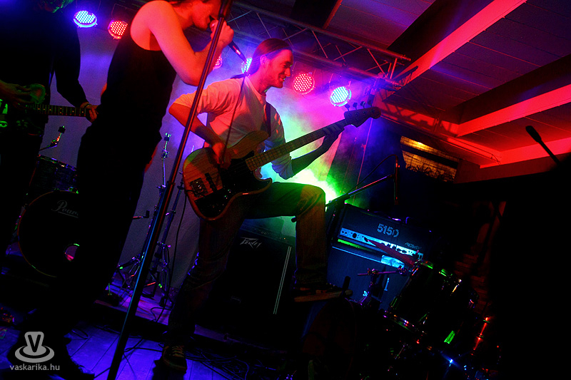 Kollégámmal elismerően bólogattunk, hiszen így még soha nem hallottuk ezt a szót kimondva. Megvontuk a vállunkat és tovább hallgattuk a muzsikálást. A foltos nézőtérben elveszett nagy energiaátadás miatt elkezdett-ahogy Tamás is megemlítette a szám végén- füstölni a feje, ami egy leégett rakétaporszívóra hasonlított leginkább. Igaz a hangja is olyan volt az elénekelt nóta idején. Az egyik gitáros pedig néhol visszahőkölés- szerűen játszott a sajátján, pedig nem is egy olyan felidegesített grizzlymedve hangja volt, aminek folyamatosan pöcköli az orrát A számok végén mindig lehetett hallani, hogy lefőtt a kávé,ami egyrészt a mikrofon-túltengésnek tudható be, másrészt nem egészséges sok kávét inni.