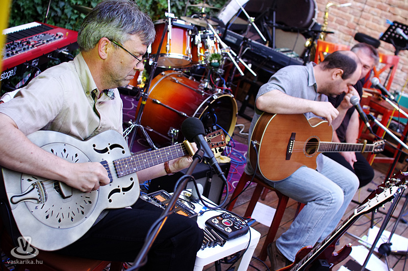 11 zenész, rengeteg hangszer és két csinos hölgy a színpadon - 2003. decemberében játszott utoljára eredeti felállásában az Acoustic Blues Jam. Június 8-án a Sörpatika kerthelyiségében pótszékes bulit adtak az igényes zene kedvelőinek.