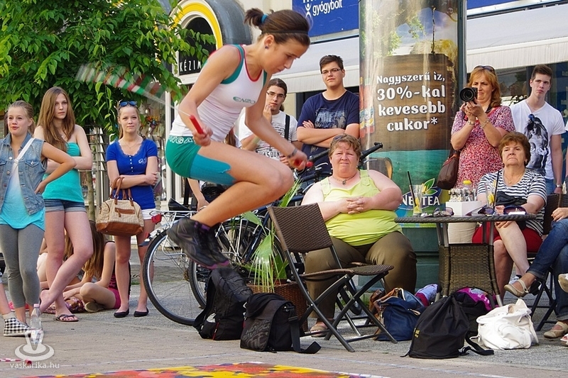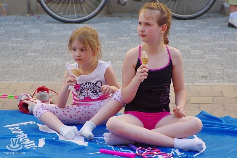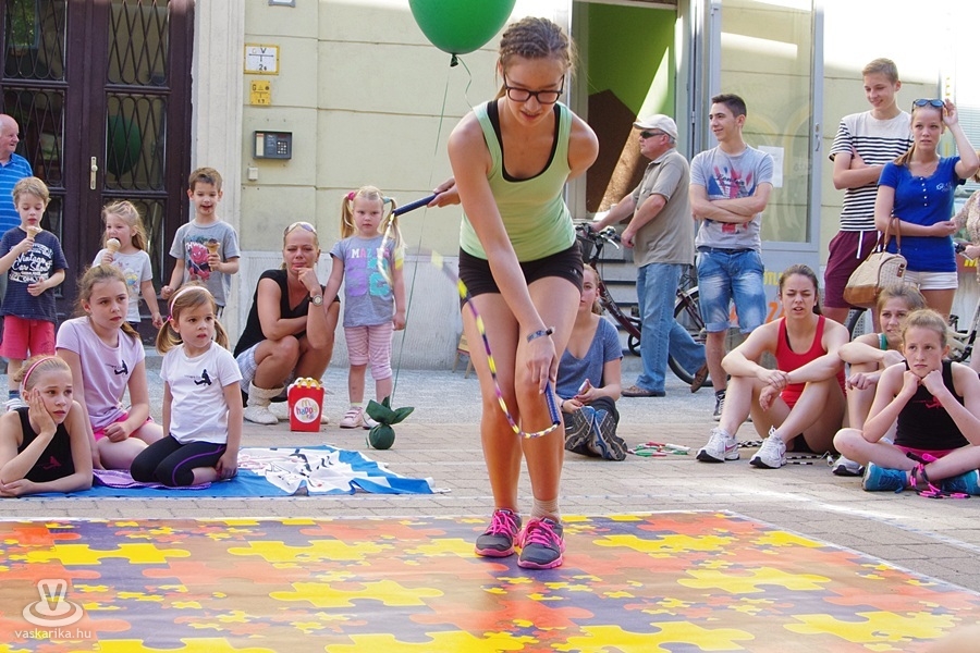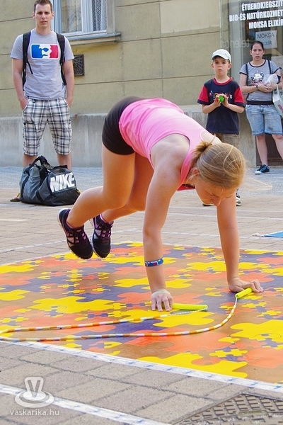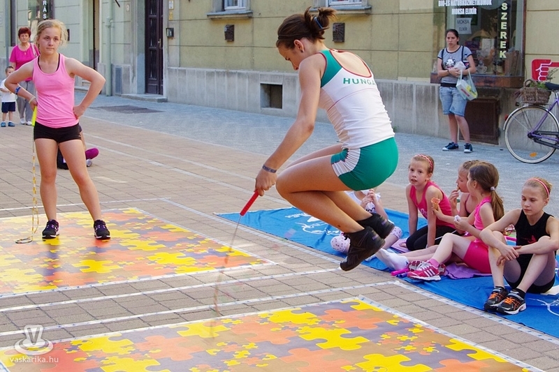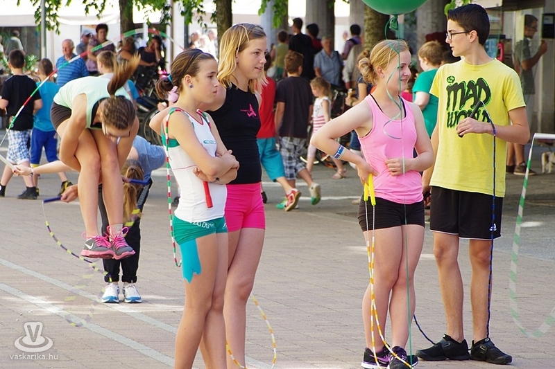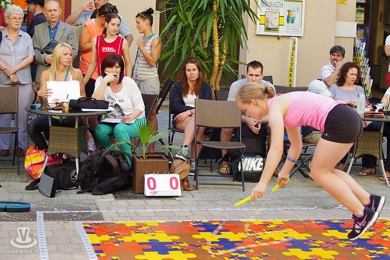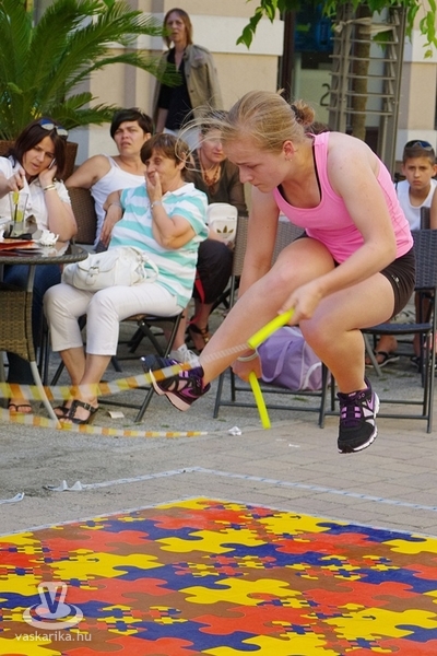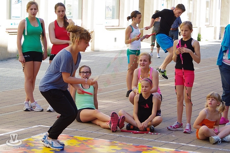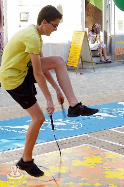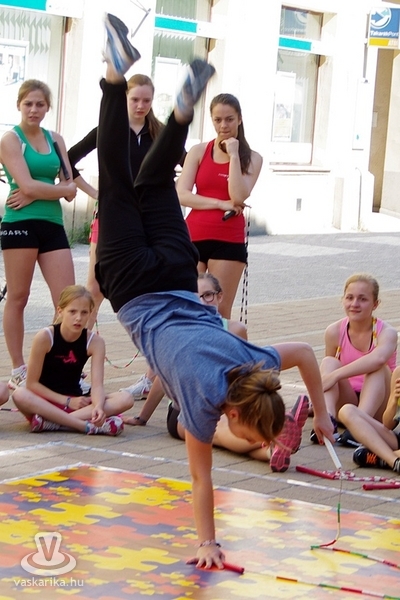 Békés párbajt rendeztek a szombathelyi kötélugrók csütörtök délután, ahol a fegyver az ugrókötél volt. A Szombathelyi Kötélugró Klub újdonsága ez a verseny, ahol ki-ki a saját stílusában mérhette össze ügyességét, kreativitását. A verseny lényege ugyanis arról szólt, hogy a párokba sorolt versenyzőknek egymás trükkjeit kellett produkálni - hibamentesen. Akinek ez nem sikerült, kiesett. Az összecsapást egy Király utcai fagyizó előtt rendezték, ahol a kiesettek és a győztesek is "fagyiba fojthatták" örömüket, illetve bánatukat. A trükkökről pedig annyit, hogy nem ritkán az akrobatikus elemektől alaposan rátekeredett a kötél a versenyzőkre - ugyan a 30Y nem volt jelen, de kibogozták magukat.