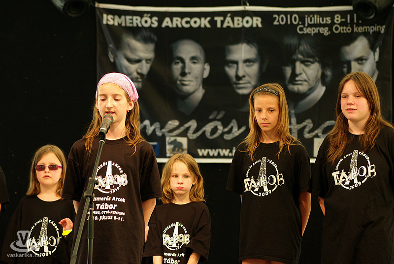 Már két és fél hónapja zajlik a visszaszámlálás a csepregi Ismerős Arcok Tábor baráti körében. Amint nyilvánosságra került a hivatalos időpont, azonnal megindult a számolgatás, talán 76-ról visszafelé. S ha netán lett volna közben olyan rövid időszak, amikor valaki ne írta volna fel a nyitásig hátra lévő napok aktuális számát a közösség saját csoportfalára, valószínűleg csak azért történhetett, mert épp a tavalyi-tavalyelőtti események, élmények visszaidézése, vagy netán a tábor női tagjaiból évről évre megalakuló, s a Katapult zenekarral rendszeresen a színpadra lépő „ötye-fitye" kórus idei produkciójának tervezgetése folyt.