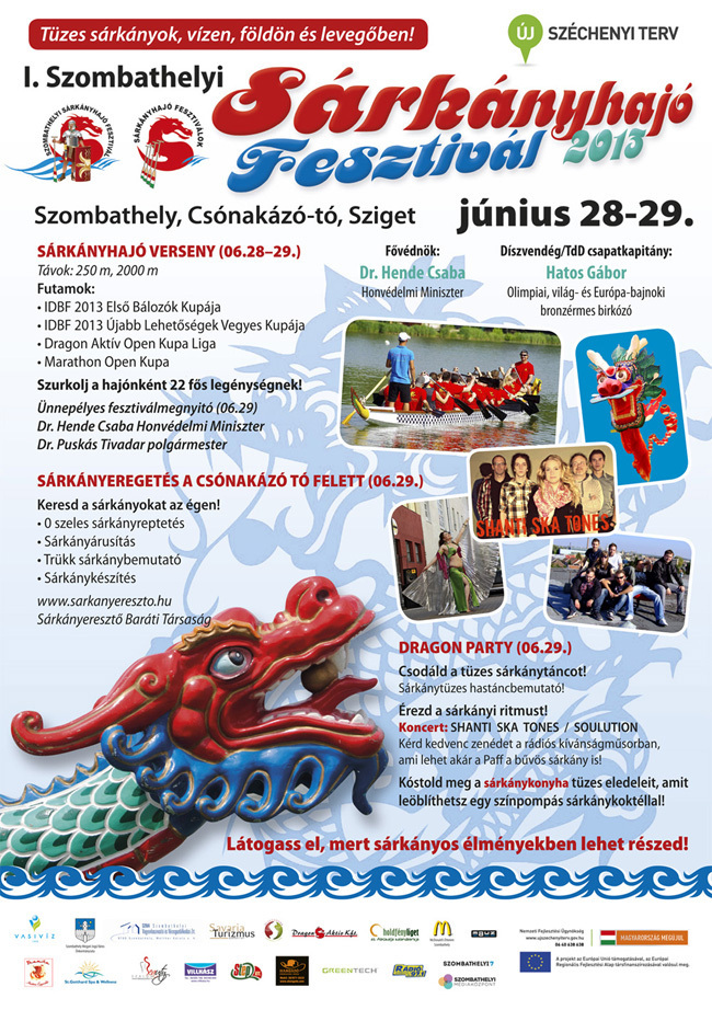 Versenyek, sárkányeregetés, hastáncbemutató, Shanti Ska Tones és Soulution koncert, tüzes sárkányok vízen, földön és levegőben! - Június 28-29-én kerül megrendezésre az első Szombathelyi Sárkányhajó Fesztivál a Csónakázótónál.