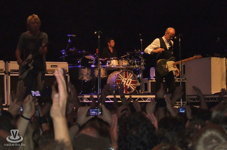 Alig 30 perc elmúltával a sátor alatt egy gombostűt nem lehetett leejteni: a brit boogie-rock legnépszerűbb bandája, a szintén négy évtizede a népszerűség csúcsán élvezkedő Status Quo következett. Hát, mit mondjak, zongorázni lehetett a különbséget a két zene minősége között. A darálós, gyors boogie-k dögösen, vérkorbácsolóan következtek, mindenki lába egyszerre dobogott, a hangulat a tetőfokára hágott. A Whatever You Want, a Paper Lane, az Again, Again, a Just Supposin és a többiek egymás után pörögtek, csak hát a színvonal esett egy kicsit: egyiknél 70-et, a másiknál 110-et ütött a metronóm, az I-IV-V fok azonban kíméletlenül ismételődött. 1986-ban, mikor először hallottam őket Pesten, még jobban belelovaltam magam az élvezetbe. Ezúttal azonban alig vártam, hogy jöjjön egy lassú szám. Nos, ez is eljött, e kései sláger, a In the Army Now valóban egy igényesebb dal. Francis Rossi és Rick Parfitt gitáros- énekesek 1967, Andy Brown zongorista-gitáros '76 óta a banda meghatározó tagja, a basszeros és a dobos ellenben új fiúk, akik precízen zenélve-mozogva beleilleszkedtek a csapatba. Rossinak három dolog miatt bocsátok meg: egyrészt az a kevés gitár rögtönzés, ami az előadáson elhangzott, az ő nevéhez köthető. Kopaszodó fejét a rockszakmában eléggé elítélendő módon se kalappal, se sapkával, se kendővel el nem fedte, és az utolsó: talán 8 gyermeke felnevelése érdekében, a mai napig lelkesen muzsikál, belead apait-anyait. Rick Parfittnak, a kísérőgitárosnak azonban nincs mentsége: a 3 akkordot lefogni tudó gitárosoknak ki kellett volna kopnia a zenei életből a 60-s évek végén. Ő csak egy ügyes túlélő. Mindenesetre a Quo két originál amerikai rock'n'rollal, Chuck Berry Rock'n'roll Music és Johnny B. Goode c. számokkal búcsúzott.