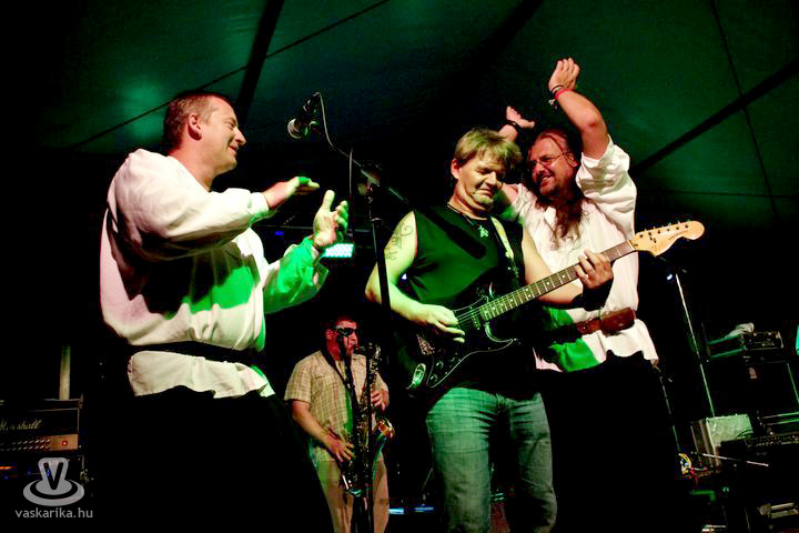 Következett a helyi Ot-tó Band, akiknek a produkcióját leírni nem lehet, azt egyszer látni-hallani kell. Ha az ember azt mondja, furán öltözött figurák vödrökön dobolnak, háromágú vellán basszusgitároznak, és csilláron szaxofonoznak, mindez leírva csupán szimpla bohóckodásnak tűnik, de ott, akkor és azoktól az emberektől, azokkal a zenékkel, visszaadhatatlan, különleges élmény. Ha nem így lenne, bizonyára nem szállna be egy kis „örömzenére" (immár nem először) Galambos Nándi sem; s persze Lecsó ebből sem maradhatott ki, itt már a billentyűket zúzta - szó szerint...