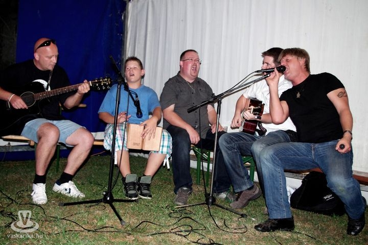 Az emelkedett pillanatokat követően a „kék sátorban" már egyre oldottabbá vált a hangulat. Előbb Kovács Miklós gitáros-énekes fakasztotta dalra az egybegyűlteket, majd a korábbi évekből már jól ismert Gyurácz Tamás csatlakozott hozzá, hogy aztán átvegye a „nulladik" estén a szórakoztatás nemes, ám hangszálakat nem kímélő feladatát. Szerencsére segítője is akadt, nemcsak a lelkes közönségben - akik néha erősítőket túlharsogva fújták vele együtt a jól ismert dallamokat -, hanem újabb zenészek személyében is. A fergeteges hangulattól elragadtatva az Ismerős Arcok zenekar már jelen lévő gitárosa, Práder Vili is mikrofont, majd nem sokkal később hangszert ragadott, és a tábor közismert személyisége, Szűcs László (alias Szöcskeapu) is csatlakozott az alkalmi formációhoz. Sikerüket és lelkesedésüket mi sem bizonyítja jobban, mint az, hogy nemcsak az óriási tábortűz elhamvadtáig, hanem egészen a hajnali órákig sem tudták letenni „a lantot"...