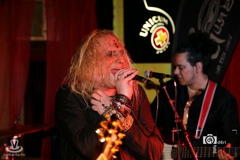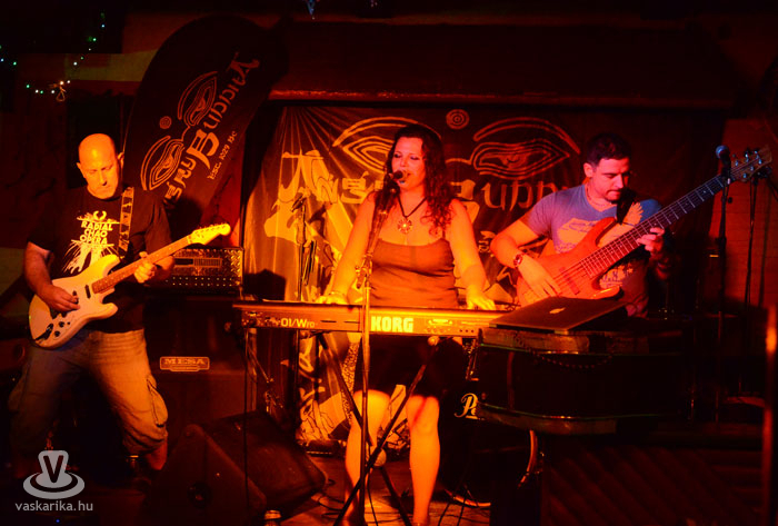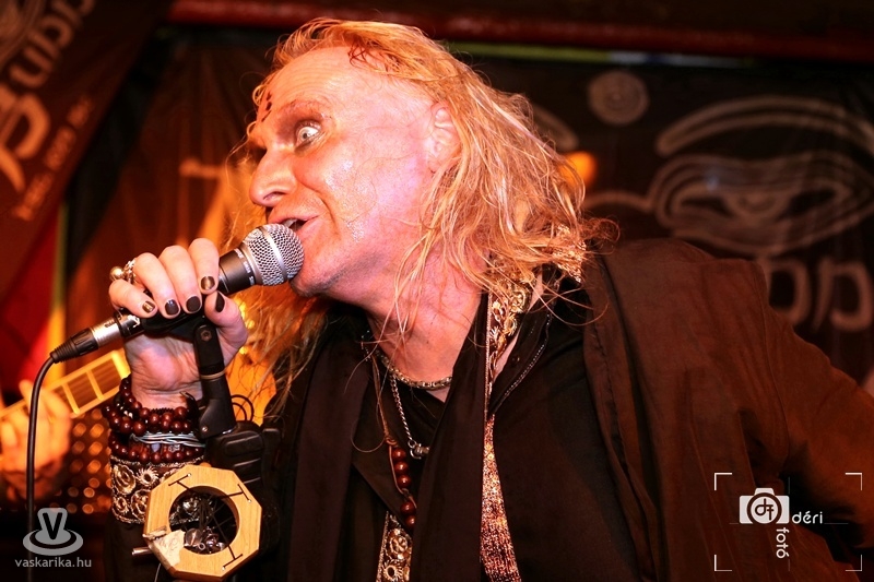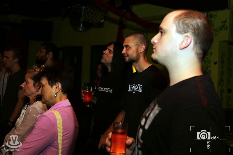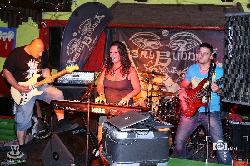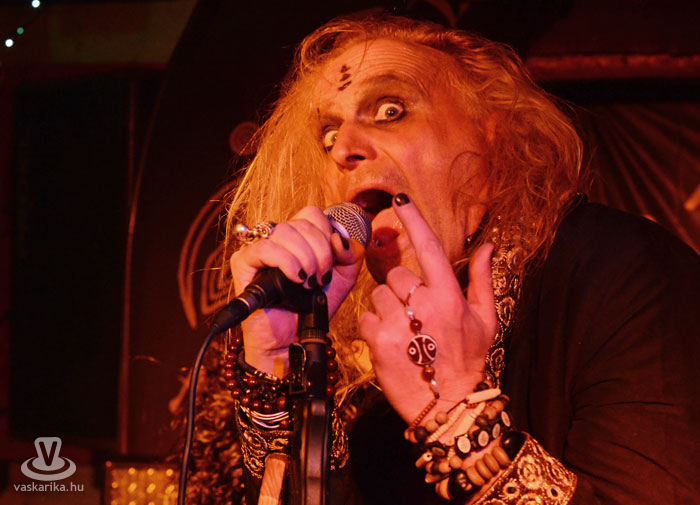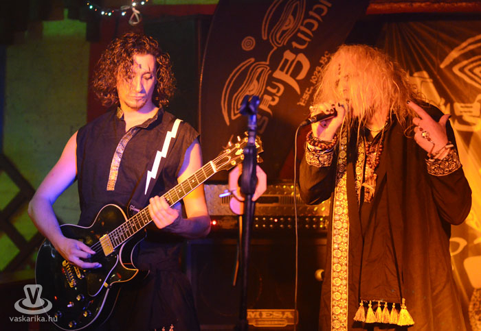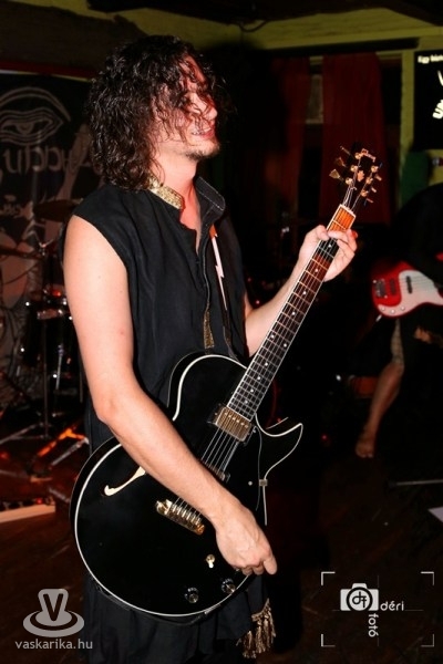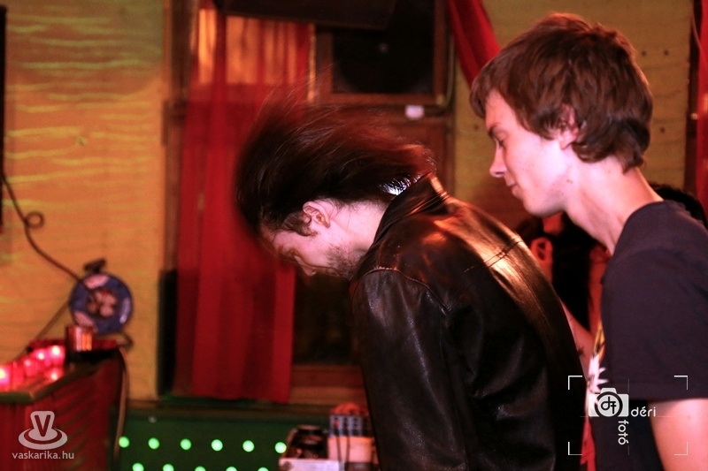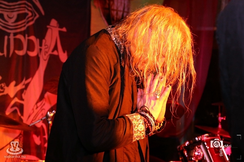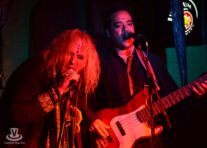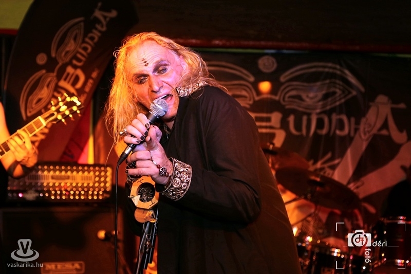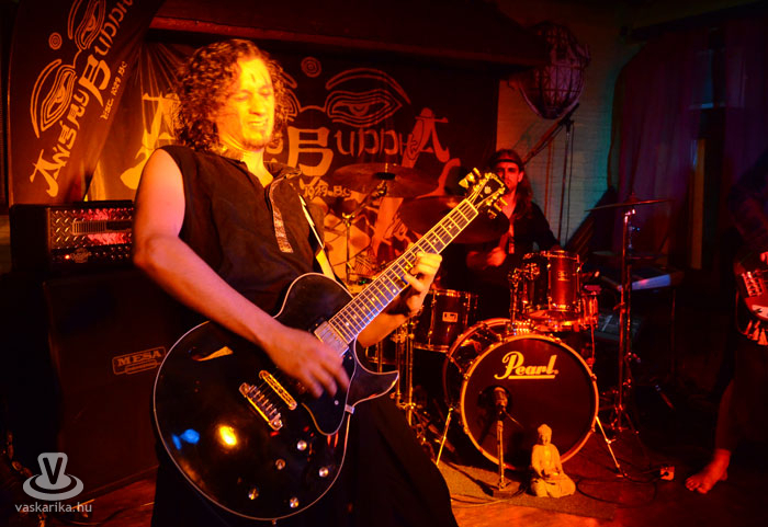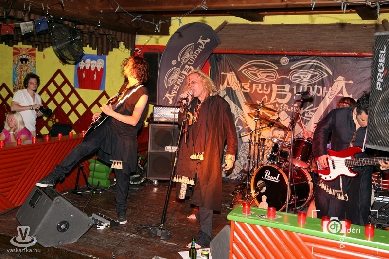 Az Angry Buddha a sárvári AZK deszkáin szinte már törzsvendég, Szombathelyen viszont - ismereteink szerint - most debütáltak. A keleti kaftánokba öltözött, bizarr külsejű zenészek, homlokukon bindivel olyan súlyos riffekkel csaptak bele a lecsóba, hogy egy nagy kérdőjellel a feje felett mindenki azonnal felállt a székéről, és a színpad elé sereglett. Amit láttunk és hallottunk, annak ugyanannyira van köze a metálhoz, mint a punkhoz, a new-wave-hez, mint a mantrázáshoz. A külsejében valahol Iggy Pop és Ozzy Osbourne közé kalibrálható Mordechai Shouter énekes elképesztően szuggesztív személyisége szinte égetett a színpadról. Képessége van hozzá, hogy vadidegen emberek felszabadultan kommunikáljanak vele mindössze néhány perc után. Hangja néha dühös üvöltés, máskor recitatív kántálás, de képes reptetni is. Még különösebbé tette a színpadi jelenlétét az állandó fricskázás, karikatúraszerűen sorjázta a rockerpózokat. (twickkk)