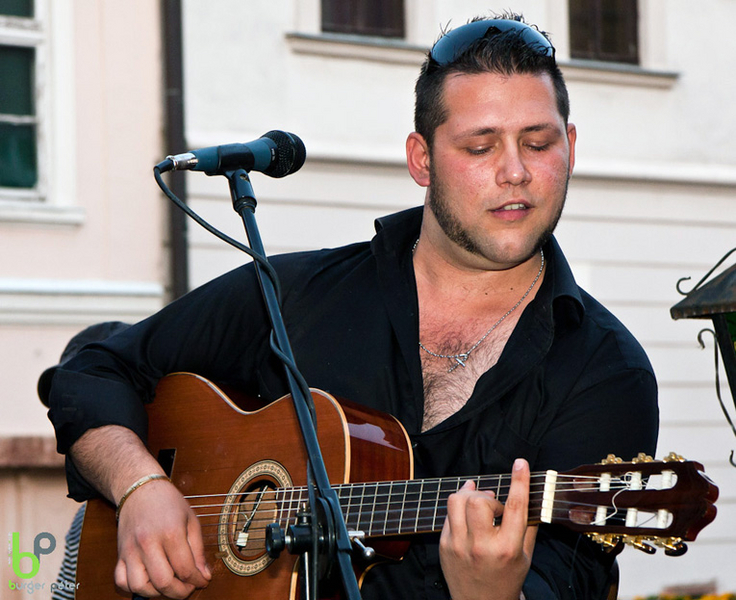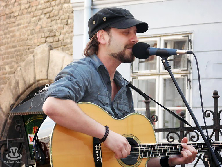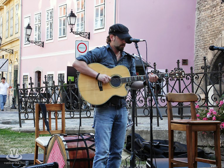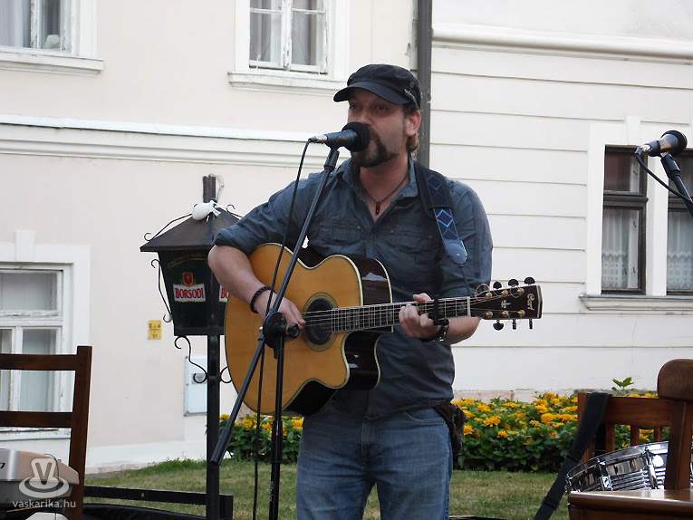 A meglehetősen titokzatos álnév alatt egy jól ismert arc húzódik meg: Váray László, akit talán legtöbben a Colombre Band-ből ismerhetnek, ezen az estén - visszatérve az alapokhoz - egy szál akusztikus gitárral felszerelkezve mutatkozott be a győrieknek. A repertoárban főleg saját dalok kaptak helyet, illetve a műsor végén három átdolgozás is szerepelt. Kaphattunk tőle hideget-meleget, azaz lendületes, élvezetes, sőt: erotikus tartalomtól sem mentes zenét, líraibb, valódi, érzelmes dalt, igazi rock and rollt. Laci a feldolgozásokat is teljesen a saját formájára szabta, külön kiemelendő a Live and let die (amit, noha 1973-ban Paul McCartney készített az akkori James Bond-filmhez, mi inkább a Guns'n'Roses előadásában ismerünk), ami ezzel a naturális gitárkísérettel is igazán meg tudott maradni energikusnak. Váray László könnyed, őszinte előadása mindenkinek tetszett, a saját szövegei fantáziadúsak és érdekesek, önmagát adta. Szívesen hallgattuk volna még.