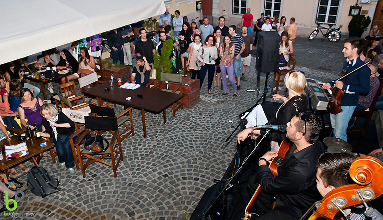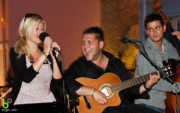 A gyönyörű győri belváros talán legszebb helyén fekvő Gróf Bistro teraszán minden hétvégén élőzene fogadja a szórakozni vágyókat. Ezen a pénteken a talányos nevű Sutherland Projekt és a Hoppáré zenekar nyújtott érdekes és színvonalas műsort a nagyszámú közönségnek.