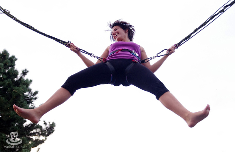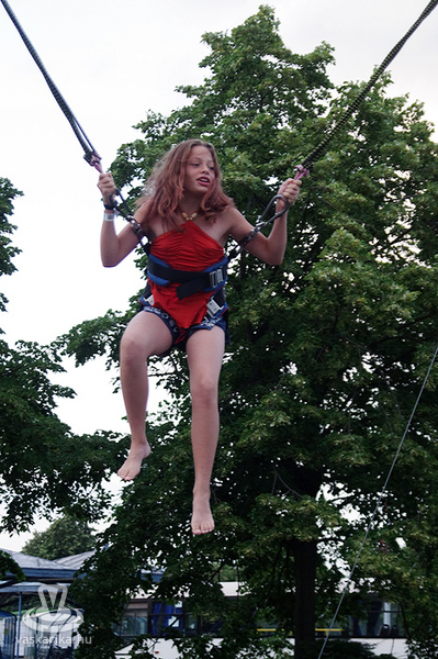 Jelen sorok írójának a bornapok leginkább optikaérzékeny helyszíne a trambulin volt, ahova S-es méretig becsatolhatta magát bárki. A kedvünkért már egyszer "vizes póló versenyt" prezentáló lányok most az egekbe ugrottak - pontosabban csak egyikük. Terpesz, szaltó, félülő póz - volt minden, mi szemszájnak in Gere (bornapok...), szúnyogirtó helikopterrel megbolondítva.